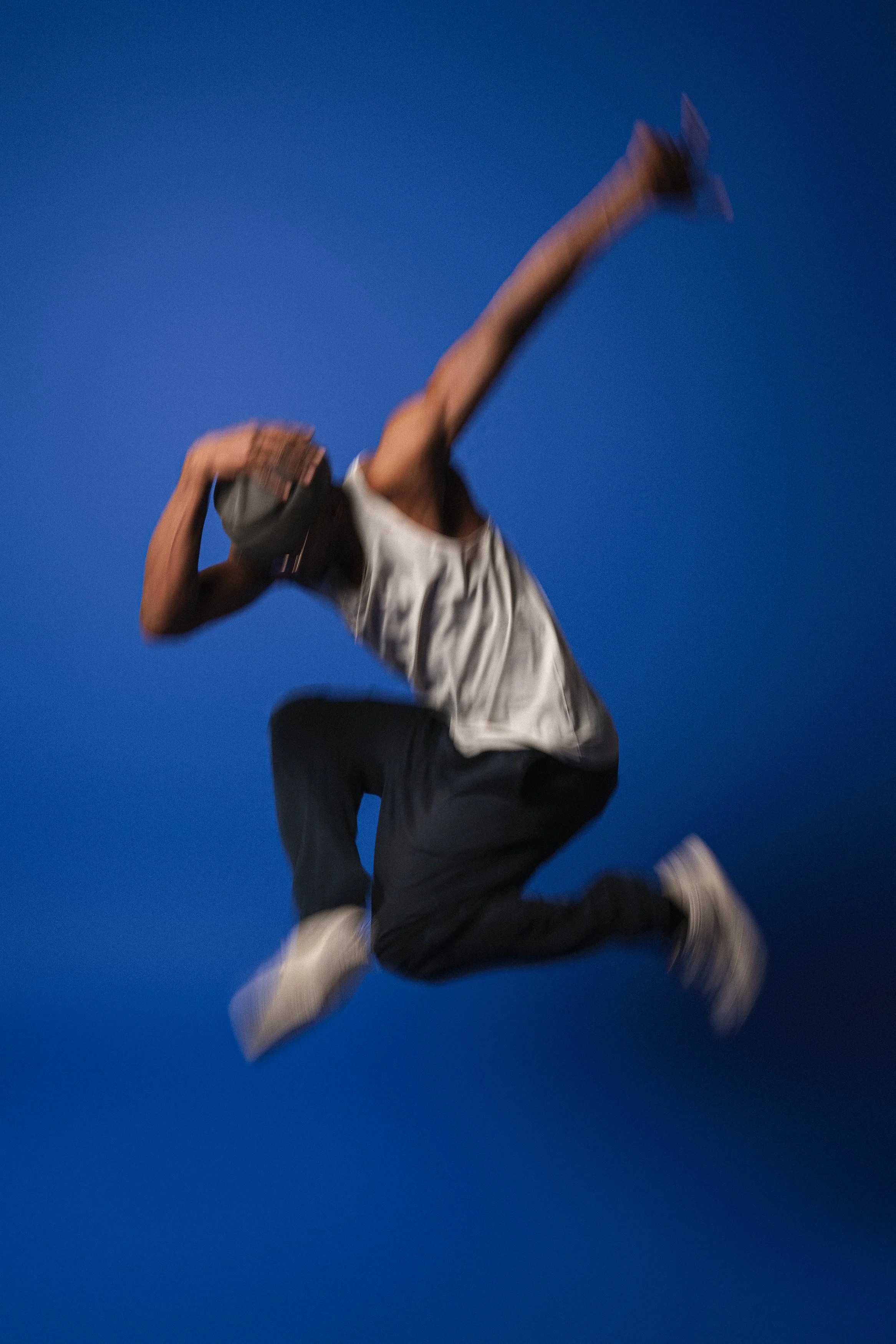 Obscuring the models’ faces was imperative as the imagery was not to focus on them but on the dance and movement.